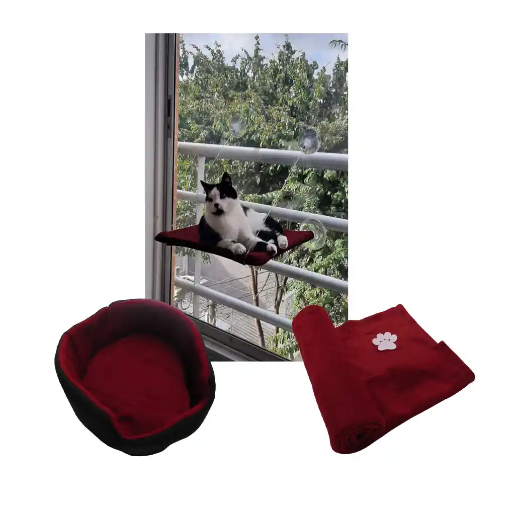 Bienvenido somos HallyPet, tu mejor aliado para el cuidado de tu hijo Perruno y/o Gatuno. Realizamos despachos a nivel nacional todos los días a la 1 pm, si es para Bogotá entregamos el mismo día, las compras realizada después de esa hora se despachan al día siguiente. CAMA HAMACA PARA GATOS La mejor cama para gatos cómoda para tu gato, a nuestro gato le encantará jugar y dormir en ella. La cama para la ventana es práctica, ocupa poco espacio y se coloca en pocos segundos, quedando completamente horizontal. Características del producto: • Dimensiones: ancho de 40 cm, fondo 38 cm, alto 3 cm. • Forma cuadrada • Pesos aproximadamente de 18 kilos. • La Cubierta Inferior es elaborada en material resistente. • Cuenta con 4 Ventosas para pegar al vidrio de la ventana (Solo debes de limpiarla con Agua y jabón antes de usar. • La hamaca es adecuada para tomar el sol de tu gato. • Ocupa poco espacio. • Adecuada para dormir o asiento de descanso de tu mascota. Lleva : Una Cama doble faz para darle un súper descanso a tu Gato La cama redonda doble faz para gatos es ideal para que un gato descanse cómodamente, esta elaborada en tela fleece adicionalmente en su base cuenta con un relleno siliconado supersuave Medidas diámetro 47 Cm, Alto 19 Cm Lleva 1 Cobija térmica Grande para mascota con lindo estampado de huella. Elaborada en tela térmica con alto grado de suavidad, cuenta con los bordes fileteados para que esta no pierda su forma al pasar el tiempo, Adicional mente se puede utilizar complemento o cobija en la cama de tu mascota, gracias a la tela estas cobijas brindan calor y comodidad Tiene una gran superficie de uso Aproximadamente 70 Cm x 120 Cm.