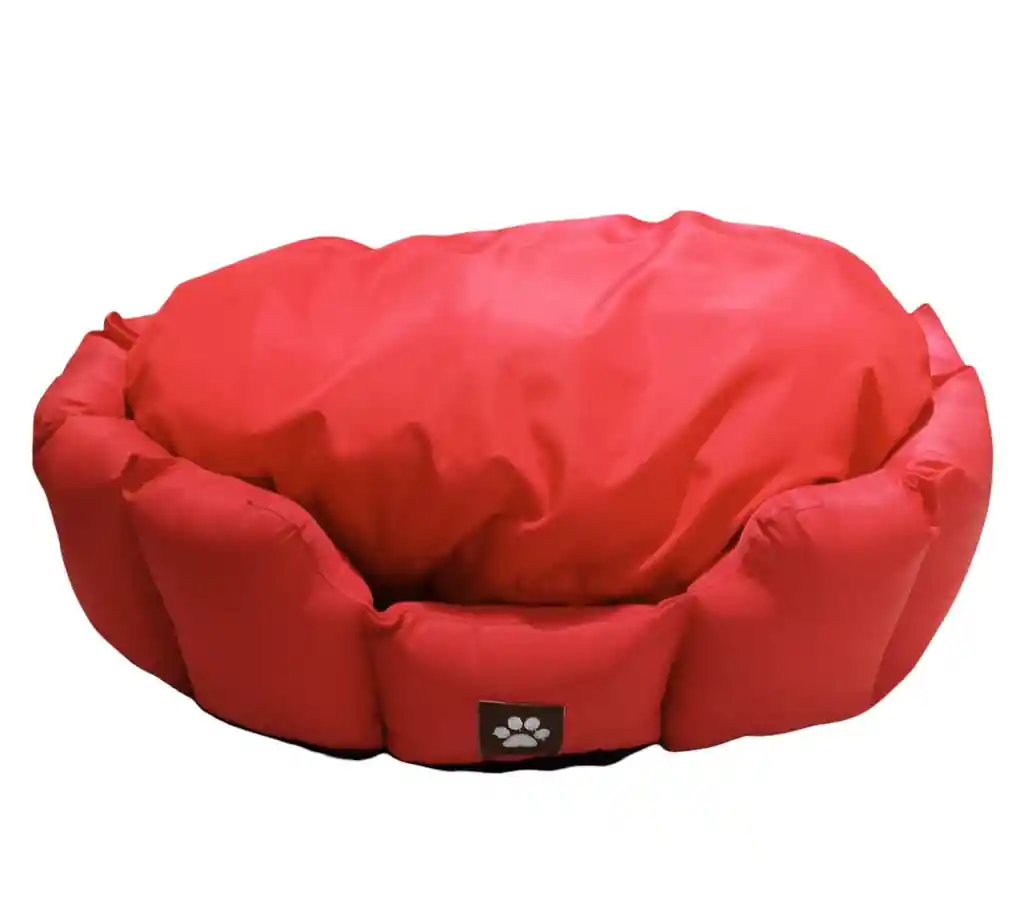 Cama impermeable grande, color rojo con diseño circular de entrada lateral, ideal para que tu mascota tenga un descanso. Suavidad, elegancia, resistencia y propiedades higiénicas Impermeable en todas sus partes, fácil su limpieza.