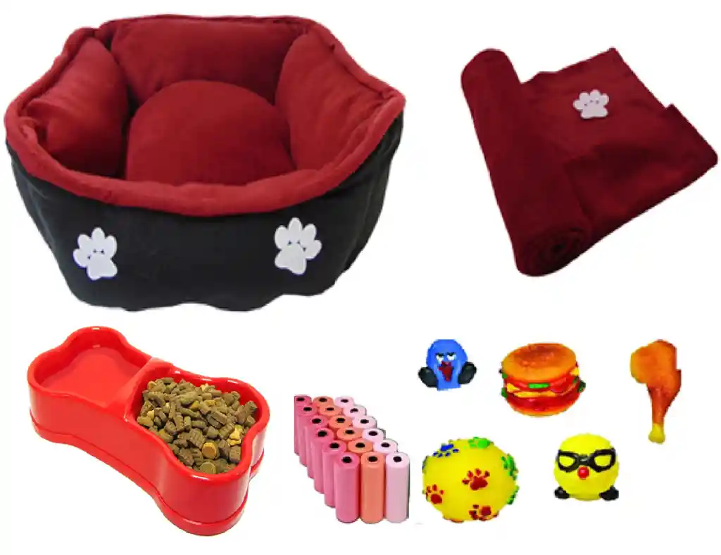Contiene 1 Cama Mediana Doble Faz 1 Cobija Mediana 70 x 70 Cm 1 Comedero Doble 10 Rollos de Bolsos 2 Juguetes Lleva Una Cama Mediana Doble Faz para darle un súper descanso a tu mascota Elaborada con tela fleece con relleno supersuave de fibra Siliconada, ideal para darle un cómodo y suave descanso a tu mascota, se puede usar por ambas caras, ideal para para perros pequeños y medianos y/o Para gatos de todos tamaños, cuenta con bordes elevados creando una sensación de seguridad y proporcionando un apoyo para la cabeza y el cuello. Medidas externas Ancho 54 cm, Largo 58 Cm, Alto 20 Cm Medidas en el área para dormir Ancho 30 cm, Largo 36 cm, Alto 14 cm Lleva 1 Cobija térmica Mediana para mascota con lindo estampado de huella. Elaborada en tela térmica con alto grado de suavidad, cuenta con los bordes fileteados para que esta no pierda su forma al pasar el tiempo, Adicional mente se puede utilizar complemento o cobija en la cama de tu mascota, gracias a la tela estas cobijas brindan calor y comodidad Tiene una gran superficie de uso Aproximadamente 70 Cm x 70 Cm. Elige el color que más te guste entre más de 10 Colores. Se puede en lavadora ciclos de lavado delicados o suaves colocando la cama dentro de una funda secando en fondo de la lavadora o secadora directamente después del lavado.