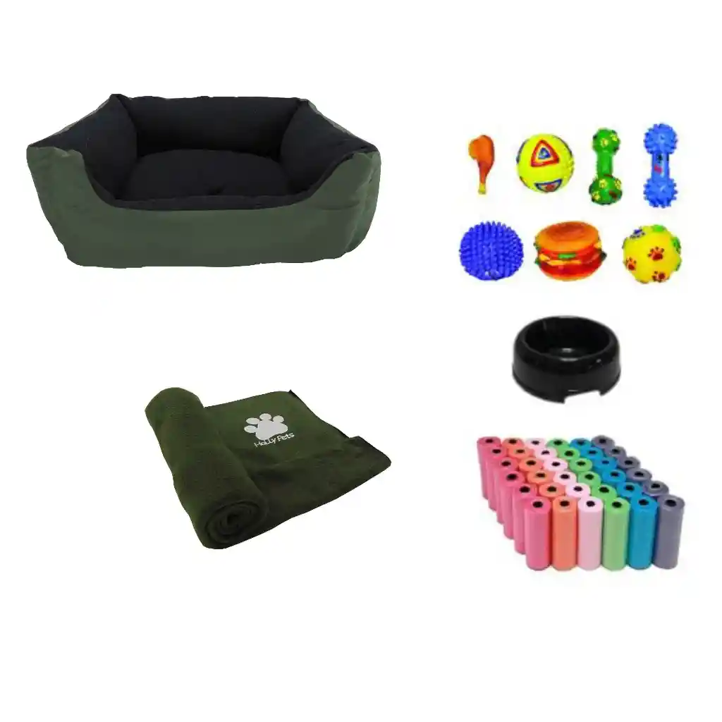 Bienvenido somos Hally Pets, tu mejor aliado para el cuidado de tu hijo Perruno y/o Gatuno. Lleva Este Combo: Una Cama para darle un super descanso a tu mascota. Una cobija térmica 70 cm x 70cm 100 bolsas Repuesto para Recoger Excremento Dos juguetes plásticos chillones (se envía cualquier juguete) Un comedero pequeño redondo plástico (color surtido) Cama: Elaborada en tela polar y Fibra Siliconada, para darle un cómodo y suave descaso a tu mascota, se puede usar por ambas caras, ideal para para perros pequeños y medianos y/o Para gatos de todo tamaño, cuenta con bumpers para que apoye su cabeza donde quiera. Medidas externas Ancho 45 cm, Largo 54 Cm, Alto 20 Cm Medidas en el área para dormir Ancho 26 cm, Largo 30 cm, Alto 15 cm Esta super promoción te permitirá tener cobija de , elaboradas en tela térmica con alto grado de suavidad, cuenta con los bordes fileteados para que esta no pierda su forma al pasar el tiempo, Adicional mente se puede utilizar complemento o cobija en la cama de tu mascota, gracias a la tela estas cobijas brinda calor y comodidad Tiene una gran superficie de uso Aproximadamente 70 Cm x 70 Cm.