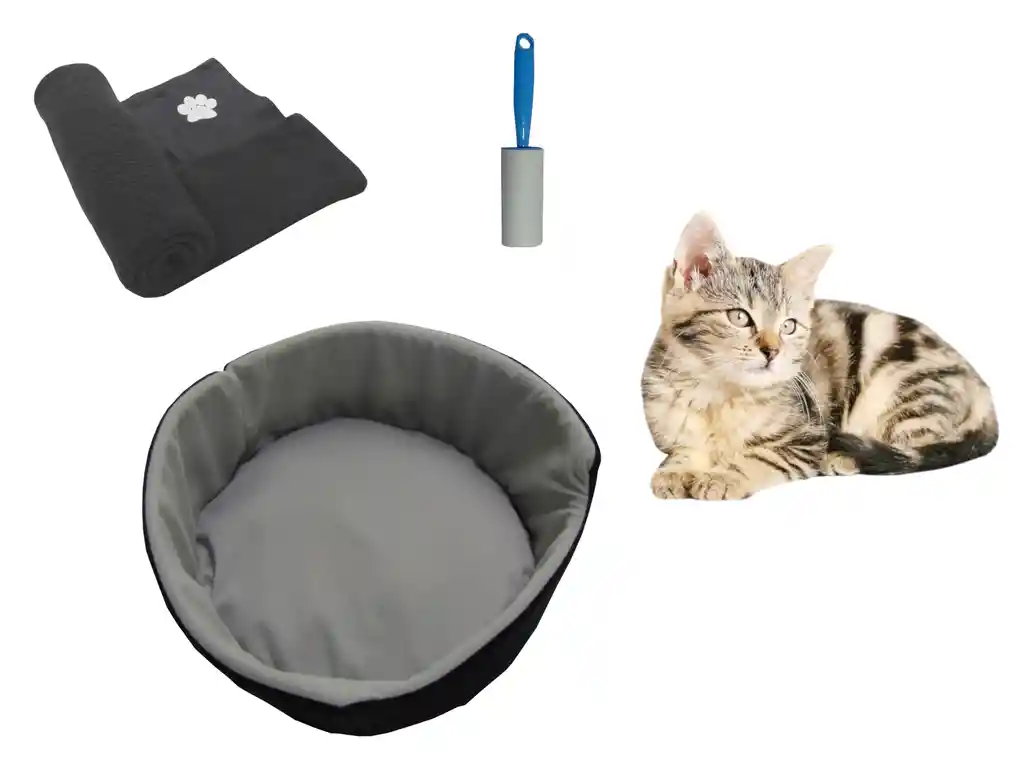Bienvenido somos Hally Pet tu mejor aliado para el cuidado de tu hijo Perruno y/o Gatuno. Lleva Una Cama doble faz para darle un súper descanso a tu Gato La cama redonda doble faz para gatos es ideal para que un gato descanse cómodamente, esta elaborada en tela fleece adicionalmente en su base cuenta con un relleno siliconado supersuave Medidas diámetro 47 Cm, Alto 19 Cm Tiene Cremallera para Retirar el Relleno Elige el color que más te guste entre más de 10 Colores Lleva 1 Cobija térmica Grande para mascota con lindo estampado de huella. Elaborada en tela térmica con alto grado de suavidad, cuenta con los bordes fileteados para que esta no pierda su forma al pasar el tiempo, Adicional mente se puede utilizar complemento o cobija en la cama de tu mascota, gracias a la tela estas cobijas brindan calor y comodidad Tiene una gran superficie de uso Aproximadamente 70 Cm x 120 Cm. Se puede en lavadora ciclos de lavado delicados o suaves colocando la cama dentro de una funda secando en fondo de la lavadora o secadora directamente después del lavado. Lleva 1 Quitamotas de pelos de mascota, con un uso de 30 Veces. Elimina eficazmente la pelusa en pantalones, abrigos, jerséis, vestidos, trajes, ropa formal, muebles y más. Tamaño de la hoja 10 Cm x 13,5 Cm El rodillo tienen mango antideslizante y duradero está diseñado ergonómicamente para adaptarse a tu mano cómodamente. Garantía del vendedor: 5 días