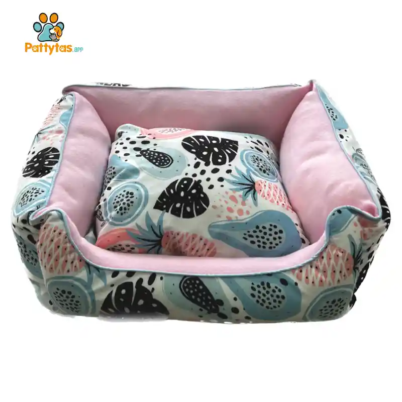 CAMA COCTEL, con almohada reversible, ideal para el descanso del consentido de la casa, suave fácil de lavar, ideal para perros pequeños y medianos y/o para gatos de todo tamaño, cuenta con bordes acolchados para que apoye su cabeza donde quiera 🐾 Tamaño: 57cm x 46,5cm *IMAGEN DE REFERENCIA: Colores y estampado varían según disponibilidad del momento.