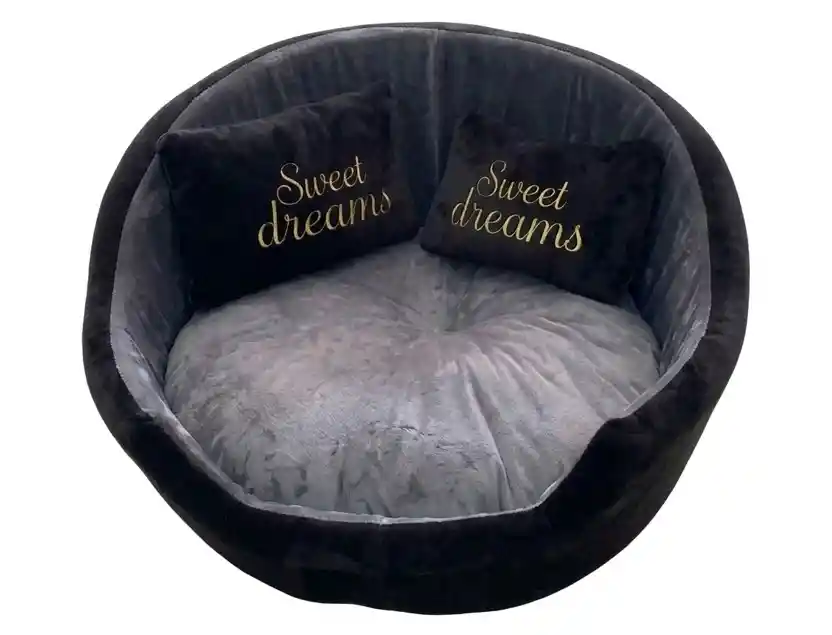 Cama cómoda y acolchada diseñada especialmente para brindar descanso y confort a perros de talla pequeña. Su forma redonda permite que la mascota se acurruque fácilmente, ofreciendo sensación de seguridad y bienestar durante el sueño. Fabricada con materiales suaves y resistentes, combina diseño en tonos gris y negro que se adapta a cualquier espacio del hogar. Su base acolchada ayuda a aislar del frío del suelo, proporcionando un descanso más cálido y confortable para tu mascota.