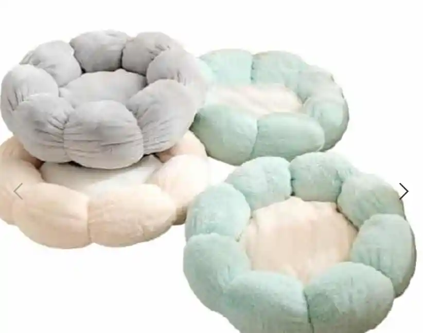 Una cama en forma de flor para perros y gatos pequeños. Hecho de felpa y algodón, parte inferior de tela Oxford, muy suave y cálido. La parte inferior es impermeable, resistente al desgaste y antideslizante, lo que la hace más segura de usar.