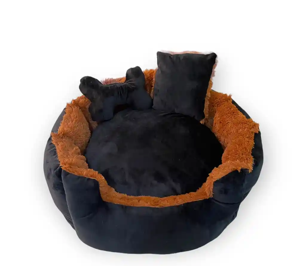 Cama talla L, 70cm de diámetro, Tiene cierres para extraer el relleno y lavarlas fácilmente, Incluye dos cojines. (Producto Fabricado por Cositas Pet)