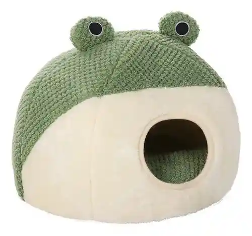 Un refugio acogedor y divertido donde tu mascota puede descansar con total tranquilidad. Su diseño tipo cueva brinda sensación de seguridad y abrigo, perfecto para gatos y perros pequeños que aman los espacios cerrados. El interior suave y acolchado mantiene el calor, mientras su estructura firme conserva la forma y aporta comodidad en cada descanso. El diseño de ranita le da un toque encantador que decora cualquier rincón del hogar.