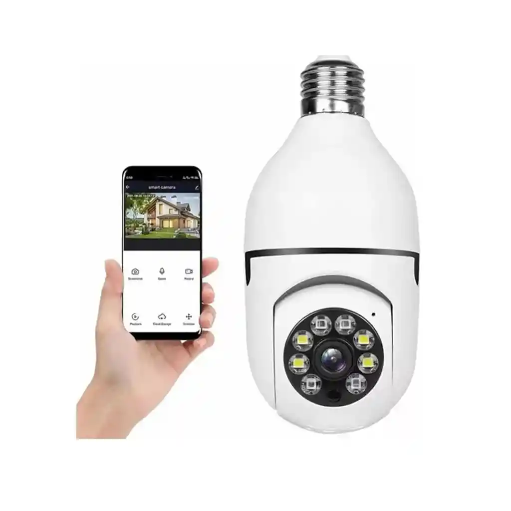Protege lo que más te importa con la Cámara Bombillo de Seguridad .Esta innovadora solución combina seguridad y comodidad, integrándose perfectamente en tu hogar u oficina. Disfruta de una vigilancia completa con su visión panorámica de 360° y control remoto de giro e inclinación, eliminando puntos ciegos y permitiéndote monitorear cada rincón desde tu dispositivo móvil. La instalación es tan sencilla como cambiar un bombillo, sin cables ni complicaciones adicionales. Con la Cámara Bombillo ONE PIXEL, obtén tranquilidad y control total en la palma de tu mano. Monitoreo 360°: Visión panorámica completa con giro horizontal y vertical para una cobertura total. Instalación Sencilla: Se instala como un bombillo estándar E27 (110V-240V), sin necesidad de cables ni técnicos. Audio Bidireccional: Comunícate a través de la cámara gracias a su micrófono y altavoz incorporados. Visión Nocturna: Monitorea incluso en la oscuridad, garantizando seguridad las 24 horas. Alarma de Movimiento: Recibe notificaciones instantáneas en tu celular cuando se detecte movimiento sospechoso.