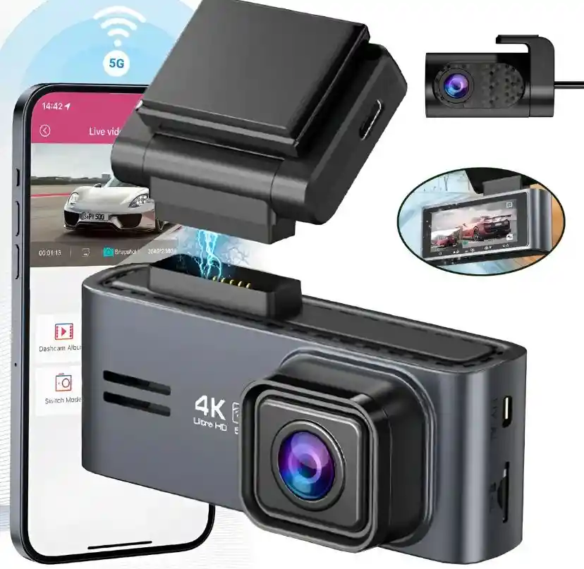 CAMARA CARRO 4K WIFI 5G OMBAR DOBLE LENTE 64GB MEORIA