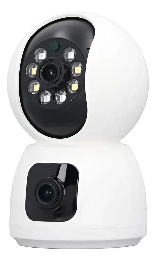 Camara Ip Wifi Doble Lente 360 Interior Este dispositivo te permite monitorear en tiempo real lo que sucede dentro de tu hogar, ya sea de día o de noche. Gracias a su avanzada tecnología de visión nocturna, no habrá ningún rincón oscuro sin vigilancia. Además, cuenta con detección de movimiento inteligente, enviándote notificaciones instantáneas en tu teléfono cuando se detecte cualquier actividad sospechosa. Especificaciones: • Tipo de dispositivo: IP • Aplicación de funcionamiento: Scanea el QR en la caja • Sensor de movimiento con alertas al celular • Incluye accesorios de soporte • Instalación en cualquier posición: Techo o cualquier superficie • Calidad de resolución: Full HD 1080p • Incluye 2 lentes de 2MP • Lente inferior con rotación de 355° • Lente Inferior Fijo • Tipo de conexión: WiFi • Ambiente de uso: Interno • Visión nocturna • Micrófono integrado 38 dB • LED infrarrojos: 10 piezas 940 nm LED • Distancia infrarroja: 10 metros'.