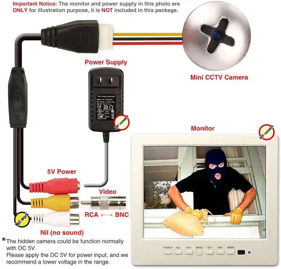 ¡Hola, Somos tu compra segura! Excelente estabilidad, capaz de capturar vídeos claros, así como imágenes. Diseño refinado: forma de tornillo, único y compacto, tamaño ultra pequeño. Peso ligero, buena ocultación. Bajo consumo: con bajo consumo, aparte de ahorrar energía, mucho más seguro que otros aparatos eléctricos de alta potencia cuando se usa. (Por favor, aplique 5 V CC para la entrada de alimentación de la mini cámara en caso de problema de sobrecalentamiento) Con función de vídeo, presentando escenas visuales en tiempo real e imágenes. Como una mini cámara discreta, se puede colocar dentro de paredes u objetos para monitorear el entorno. Perfecto para la vigilancia del hogar y la oficina, también apto como cámara de seguridad Píxeles: 720 Número de marcos: 30 fps. Formato de vídeo: AVI. Resolución de vídeo: 720P Formato de imagen: JPEG. Tamaño de imagen: 4032 x 3024. Ángulo de visión: 70°. Voltaje de entrada: CC 5 V 1 A. Duración de batería, cámara conectada al DVR 24/7 El paquete incluye: 1 x Mini cámara DVR 1 x Manual Recuerda que la vida útil de tu PRODUCTO depende directamente de su uso. Por esto mismo te recomendamos seguir todas las instrucciones que trae cada artículo al pie de la letra y leer el manual de GARANTÍA.