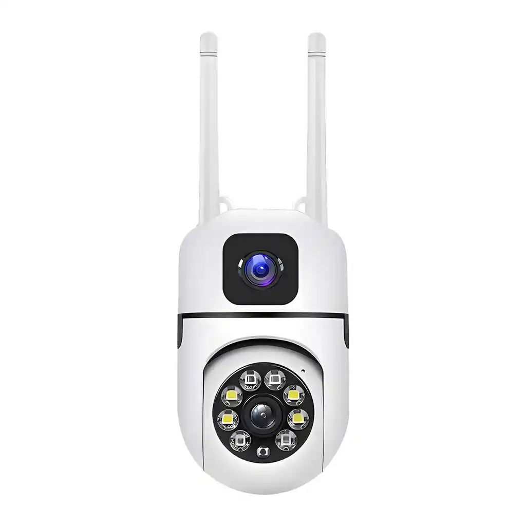 Esta cámara PTZ de seguridad para interiores ofrece una solución de vigilancia integral con su innovador sistema de doble lente y vista previa de pantalla dual que permite monitorear dos puntos simultáneamente. Gracias a su capacidad de rotación de 355° en horizontal y 90° en vertical, garantiza una cobertura total de 360 grados sin puntos ciegos, todo controlado remotamente de forma sencilla a través de una aplicación móvil. Equipada con visión nocturna a todo color mediante 4 LEDs integrados, intercomunicador de voz bidireccional y detección de movimiento avanzada, esta cámara HD es la herramienta definitiva para proteger su hogar y mantenerse conectado con sus seres queridos en tiempo real. FICHA TÉCNICA Modelo: T-4 Tipo de cámara: Cámara de vigilancia con doble visión Resolución: HD Alta Definición Lentes: Doble lente para monitoreo simultáneo Ángulo de rotación horizontal: 355 grados Ángulo de rotación vertical: 90 grados Cobertura: 360 grados sin puntos ciegos Visión nocturna: Modo a color con 4 LEDs integrados Audio: Bidireccional (micrófono y altavoz integrados) Conectividad: WiFi e incluye doble antena externa Compresión de video: H.265 Funciones: Detección de movimiento y alertas al celular Almacenamiento: Compatible con nube y tarjeta micro SD (no incluida) Uso recomendado: Interiores POLÍTICAS DE GARANTÍA Garantía de 1 mes por defectos de fábrica. Esta garantía cubre exclusivamente fallos técnicos o de funcionamiento interno del hardware. No aplica en casos de golpes, humedad, sobrecargas eléctricas, mala manipulación del software, sellos de seguridad rotos o si el producto presenta daños físicos evidentes. Para tramitar cualquier garantía, el producto debe devolverse en su empaque original y con todos los accesorios completos.