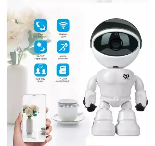 ¡Graba todo lo que pasa en tu hogar, oficina o donde quiera que la ubiques! Está cámara te permitirá grabar cada acontecimiento que pase en tu casa oficina, etc. Además incorpora led infrarrojos para poder grabar en la noche con claridad. También cuenta con intercomunicador para comunicarte a través de la cámara. CARACTERÍSTICAS: -1280x720 -Movimiento horizontal: 355° -Movimiento vertical: 90° -Conexión Wi-Fi -Parlante integrado -Micrófono integrado -Puerto MicroSD hasta 32GB (NO incluida) -Dimensiones aproximadas: 17 x 8 x 7 cm