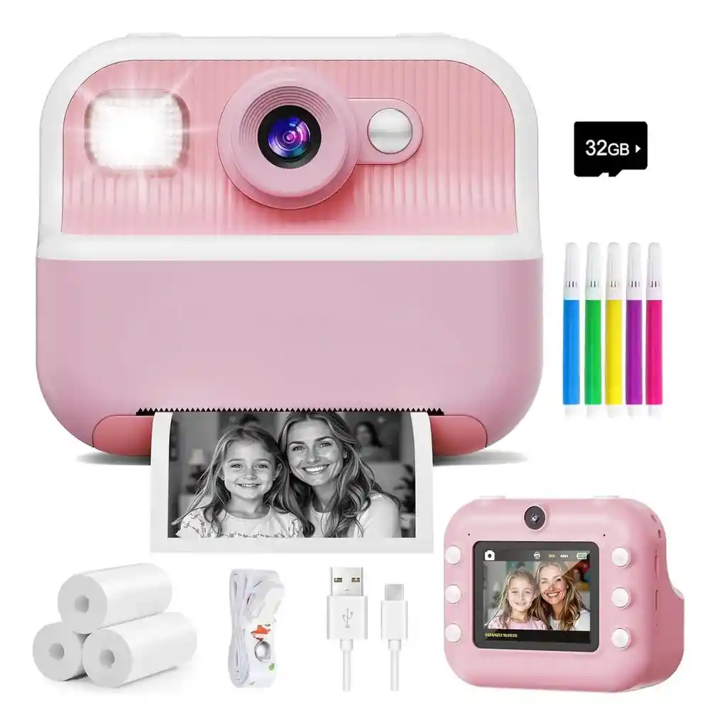 Camara Digital Kids Printing NB2732 1: IMPRESIÓN INSTANTÁNEA DE LA CÁMARA PARA NIÑOS: Esta cámara para niños cuenta con la función de impresión instantánea Printomatic, lo que permite a los niños imprimir sus fotos inmediatamente después de capturarlas. Esto no solo agrega diversión a la experiencia, sino que también fomenta la creatividad y las habilidades prácticas en los niños. 2: CÁMARA PARA NIÑOS 10-12: Diseñada específicamente para niños, esta cámara es ligera, duradera y fácil de usar. La carcasa de la cámara está hecha de materiales seguros y no tóxicos, lo que garantiza la seguridad de los niños mientras la usan. Diseño ergonómico para un fácil agarre y operación con manos pequeñas. 3: REGALOS PARA NIÑAS NIÑAS DE 8-12 años: Equipado con una cámara de alta calidad y varias opciones de filtro de fotos, los niños pueden tomar fotos impresionantes. Admite divertidos modos de foto como blanco y negro, vintage y dibujos animados, haciendo de cada foto una obra maestra creativa. 4: Cámara instantánea: viene con una tarjeta de memoria de gran capacidad, lo que permite a los niños almacenar numerosas fotos sin eliminación frecuente. La batería eficiente incorporada garantiza un uso duradero. La función de carga rápida USB mantiene la cámara siempre lista para usar. 5: Cámaras instantáneas que imprimen fotos: integra múltiples funciones, incluyendo toma de fotos, grabación de video e impresión instantánea, satisfaciendo las diversas necesidades de los niños. La cámara admite juegos divertidos y aplicaciones educativas, mejorando las habilidades cognitivas y motoras. Esta cámara es una gran idea de regalo, perfecta como regalo de Navidad o cumpleaños para niños de varias edades.