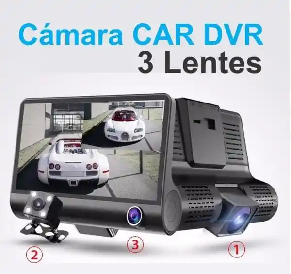 Este DVR te permitirá grabar todo lo que va ocurriendo en el camino, también podrás grabar el interior del carro y adicionalmente puedes conectarle la cámara de reversa que te ayudara en los estacionamientos. Puedes ponerle una tarjeta de memoria micro-sd de hasta 32gb para que puedas grabar todo lo que necesites. CARACTERÍSTICAS: -Micrófono incorporado -Formato de grabación AVI -Pantalla LCD de 4” pulgadas -Puerto Micro-SD hasta para 32GB Sandisk o kingston -Multilenguaje: Inglés, español, entre otros. Cámara frontal -Ángulo de visión de 170° grados -Resolución 1920x1080 30fps Cámara interior -Ángulo de visión de 120° grados -Resolución 640x480 25fps Cámara de reversa -Ángulo de visión de 120° grados -Resolución 640x480 25fps