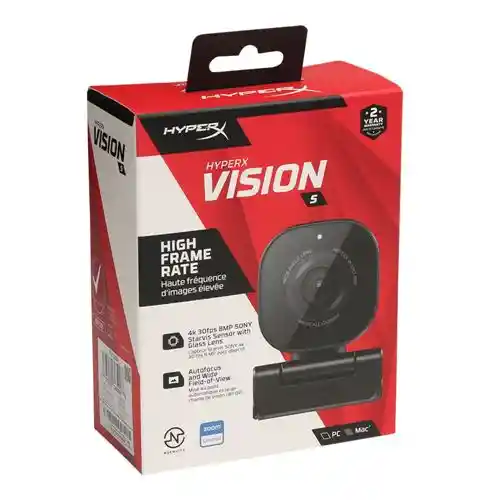 Deja que tu talento brille en todo su esplendor gracias a la webcam HyperX Vision S. La cámara HyperX Vision S, que cuenta con capacidades de grabación en 4K y un sensor Sony Starvis™ IMX415 de 8 megapíxeles, se ha diseñado para aquellos creadores que prestan especial atención a los elementos visuales de sus creaciones. Cuenta con un campo de visión de 90 º para incluir una parte mayor de tus alrededores y puede capturarlo todo en 4K a 30 fps y subir hasta los 60 fps para 1080p. Sus prestaciones de enfoque automático con gran capacidad de respuesta combinadas con una lente de cristal de baja distorsión te ayudan a permanecer en el foco de la imagen, a la vez que permiten captar otros detalles. El interruptor magnético de privacidad que incluye y el indicador LED te ayudan a proteger tu privacidad, ya que puedes poner una barrera física entre tú y posibles miradas indiscretas. Un acoplador universal con un punto de montaje de 1/4 hace que resulte muy sencilla la instalación de esta cámara USB. Resistente y fabricada para durar muchos años, esta cámara cuenta con una lente de cristal, carcasa de aluminio y cable HyperFlex extraíble y ultraflexible. Consigue que todo esté a tu gusto con el software HyperX NGENUITY. Configura ajustes de imagen como el contraste, la saturación, el balance de blancos y el antiparpadeo, así como otros ajustes de la cámara como la exposición, el zoom y la compensación en condiciones de poca iluminación desde este programa de software tan fácil de usar. La cámara HyperX Vision S es compatible con sistemas de PC y Mac, está certificada para Windows Hello y funciona con plataformas de grabación y videoconferencia, como Teams, Zoom, OBS y Discord.