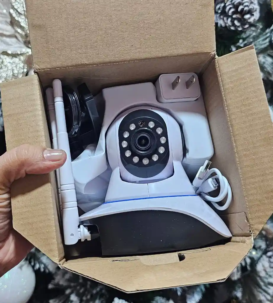 camara inteligente wifi par el hogar o negocio Cámara de seguridad inalámbrica ,se conecta al celular por WiFi . Tiene visión nocturna , micrófono, altavoz y ranura para memoria microSD, funciona con android, iPhone y PC.control remoto Gira y se inclina desde la app.