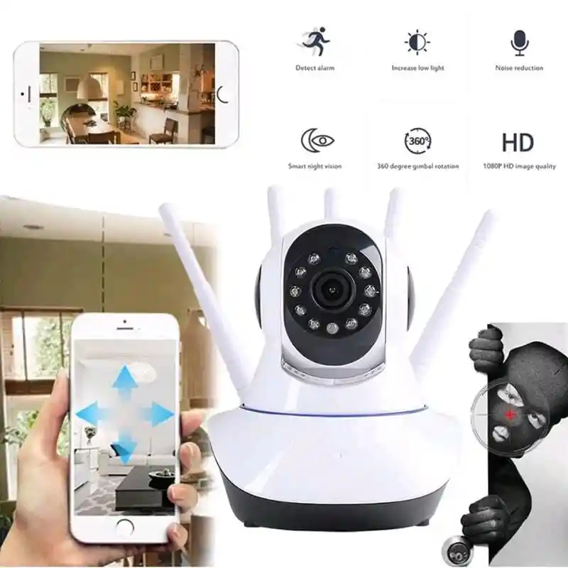 Cámara Ip Robótica Wifi 5 Antenas - Nueva cámara IP con 5 antenas para una mejor visualización de imágenes a través de Internet o teléfono celular. - Tiene infrarrojos, lo que permite ver imágenes nocturnas. - Controle a través de Internet a través de la aplicación, desde cualquier lugar. - Almacenamiento a través de una tarjeta de memoria (hasta 64 GB). - Tiene 5 antenas que permiten recibir la señal de Wi-Fi tres veces más rápido. - Alta definición