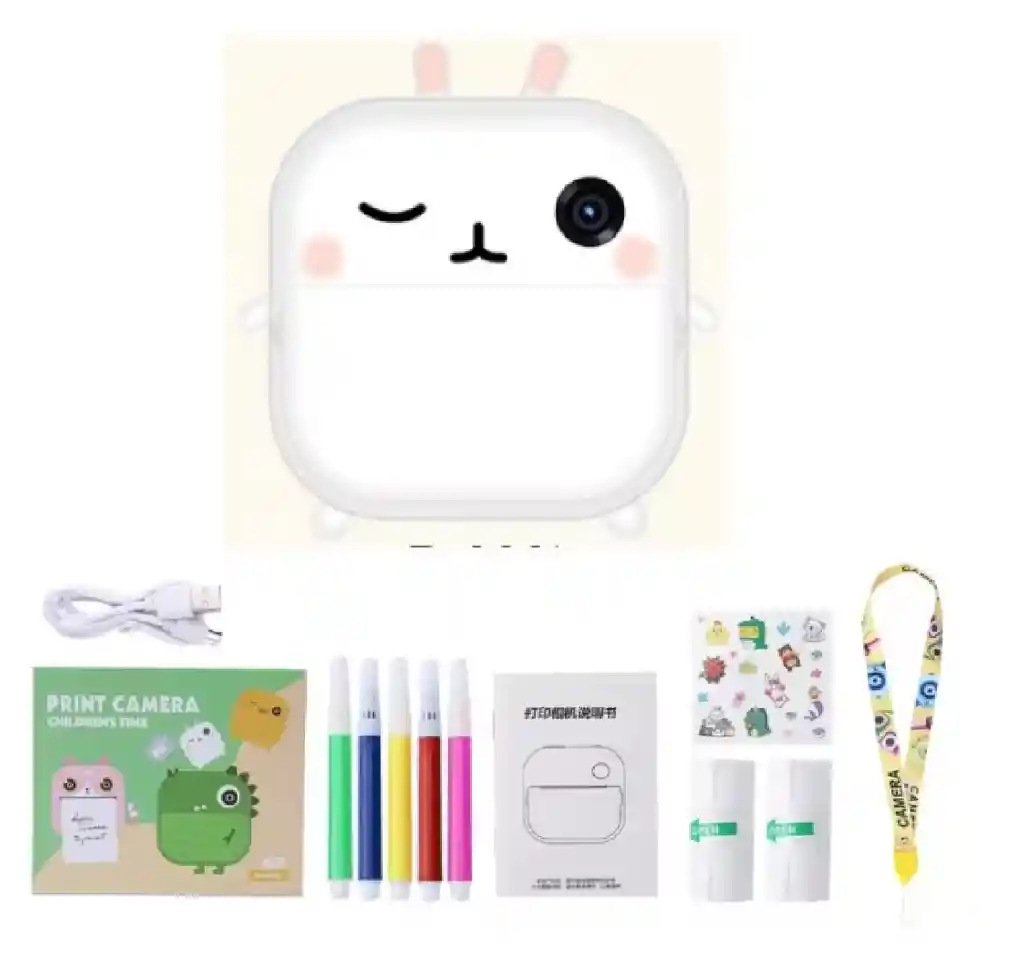 Especificación: Tipo de artículo: Cámaras de juguete Certificación: CE Origen: China continental Número de modelo: cámara instantánea para niños Género: unisex Características: Funciona con pilas Clasificación: cámara digital Capacidad de la batería: 1200mA Tiempo de carga: 2-3 horas Tiempo de trabajo: aproximadamente 4 horas (dependiendo del uso) Tamaño del producto: 90x90x40,5mm/3,54x3,54x1,59 pulgadas Corriente y voltaje: 1/2A Pantalla LCD: 2,4 pulgadas Peso neto del producto: 162,5G Interfaz de PC: USB 2,0 Memoria del cuerpo: Tarjeta TF (excluyendo la tarjeta TF) Idiomas admitidos: chino simplificado, chino tradicional, inglés, japonés, coreano, alemán, tailandés, francés, español, turco, portugués, ruso Tamaño de la imagen: Formato: JGP Vídeo: Formato: AVI, Tamaño: QVGA, VGA, 720 p, 1080 p, Velocidad de fotogramas: 30 FPS Resolución de vídeo: FULL HD 1920*1080 Resolución DE LA FOTO: 3264*2448 Soporte de tarjeta de memoria: hasta 4-32GB Funciones: modo de fotografía, modo de grabación de vídeo, modo de fotografía de pegatina fotográfica, modo de disparo continuo, fotografía de cuenta atrás, filtro en blanco y negro, filtro nostálgico, filtro sentimental Color: Conejo Blanco, Gato rosa, dinosaurio verde, pato amarillo Nota: Debido a los diferentes monitores y efectos de luz, el color real del artículo puede ser ligeramente diferente del color que se muestra en las imágenes. ¡Gracias! Permita una desviación de medición de 1-2cm debido a la medición manual. Paquetes: 1 cámara impresa 1 funda protectora de silicona 2 x papel de impresión térmica 1 x cordón (el color y el estilo son aleatorios) 1 x cable de datos 1 X pegatina de dibujos animados