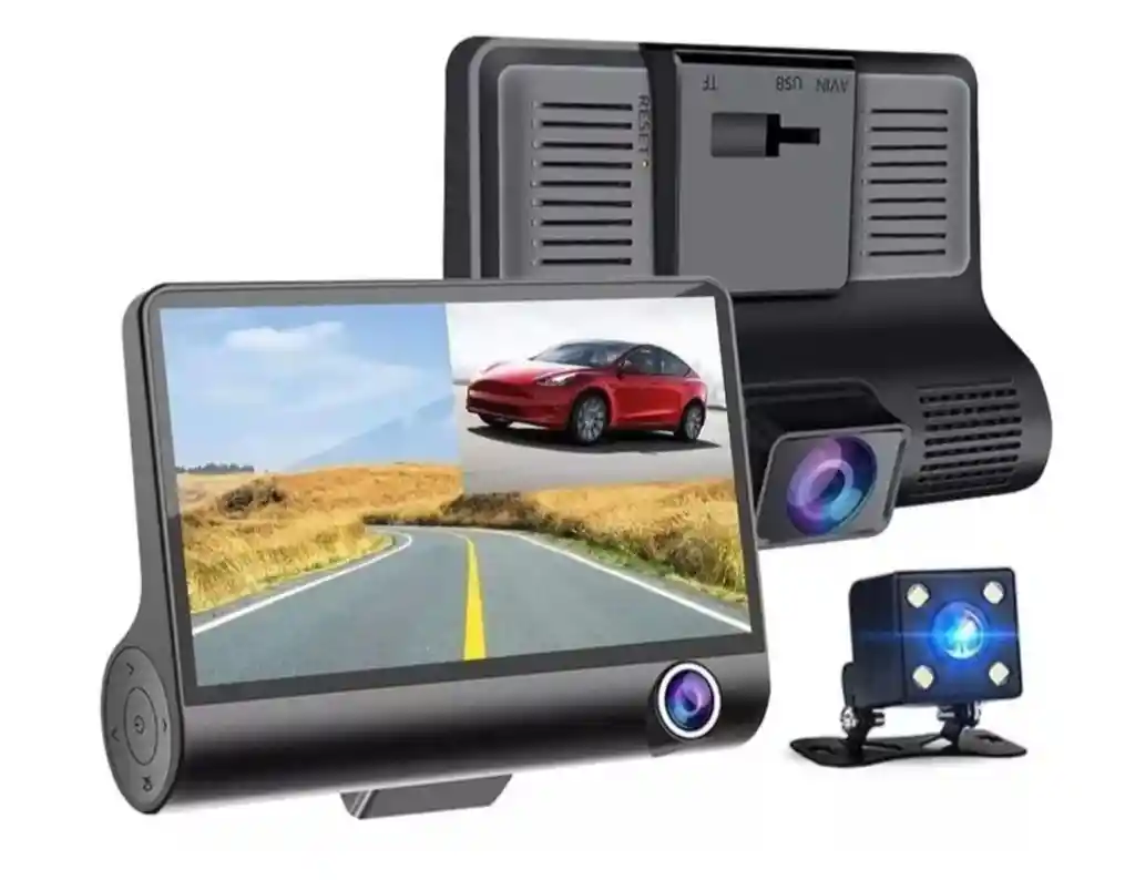 Nueva Cámara Para Carro 3 Lentes 1080p Full Hd Dash Cam 3 En 1! oporte "Imagen en imagen", dos cámaras pueden grabar y mostrar en la pantalla al mismo tiempo, puede simplemente seleccionar dos de las tres cámaras para grabar y mostrar en la pantalla (el frente y el interior / el frente y la parte posterior) Admita G-sensor, grabando automáticamente el video y el archivo de bloqueo cuando ocurra un accidente, es la mejor evidencia para usted Monitoreo de estacionamiento de alta sensibilidad Apoye la cámara de video de inversión, conecte la línea roja de la cámara retrovisora HDR: procesamiento de imágenes de alto rango dinámico El último procesamiento de video que garantiza que puede grabar y ver claramente en el día más brillante y la noche más oscura El soporte más grande tarjeta TF de 32 GB (velocidad de acceso clase 10, tarjeta no incluida)