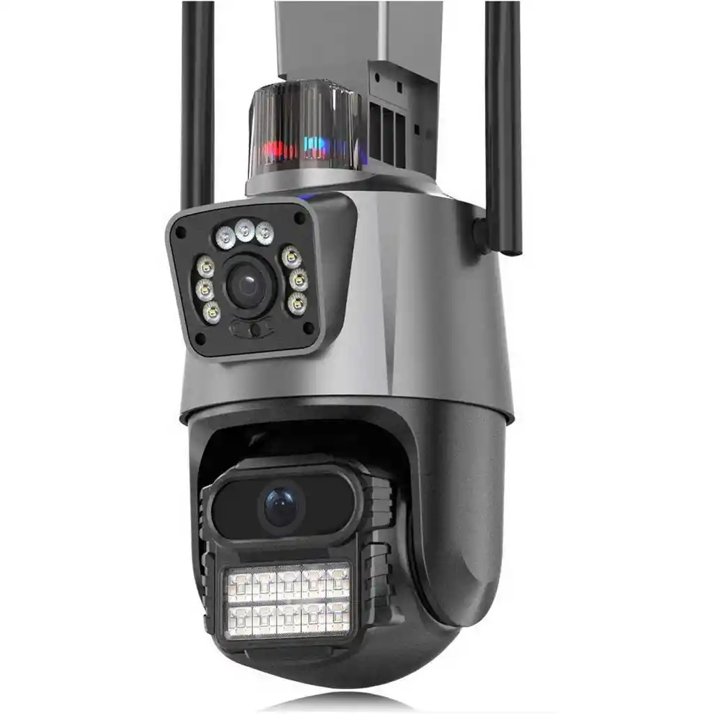 Cámara Seguridad Wifi Doble Lente 8mp 4k Ptz Alarma Sirena Gris
