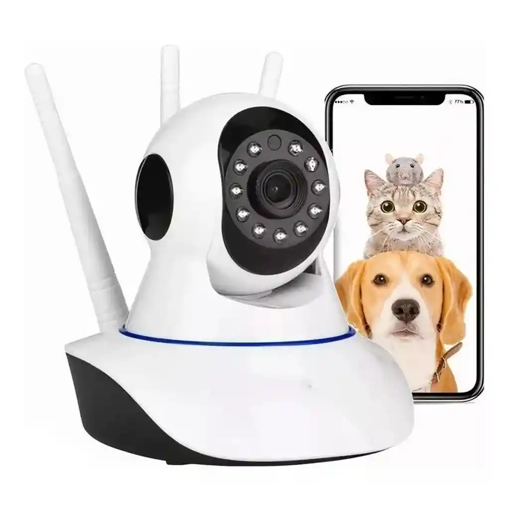 Esta cámara Wi-Fi de seguridad permite el monitoreo de tu casa u oficina desde cualquier parte del mundo, controlándola directamente desde tu smartphone o tablet (iOS/Android/Windows). Cuenta con Triple Antena para optimizar la señal y la calidad de video, que es de resolución 720p. Desde tu dispositivo, puedes girar la cámara 360° en horizontal y 120° en vertical para un control total del área. Además, su detección de movimiento, junto con el micrófono y bocina integrados, permite escuchar todo lo que sucede y tener comunicación de ambos lados. La cámara ofrece visión nocturna de hasta 10 metros, asegurando el control constante. La instalación es simple: se conecta escaneando un código QR o escribiendo un código alfanumérico, y se une a tu red Wi-Fi. Se protege con contraseña para máxima seguridad y la visualización puede compartirse en múltiples dispositivos. Incluye una base para montaje si deseas colocarla en una pared, techo o simplemente sobre una superficie plana. La aplicación permite conectar varias cámaras para un control total desde un solo luga