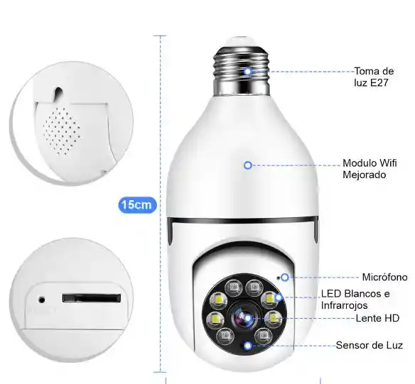 Cámara WiFi inalámbrica de 360 grados para exteriores, seguimiento automático y alarma de luz, visión nocturna a color, WiFi de 2.4 GHz 1080P, audio bidireccional para el hogar *Potencia: 5.0 vatios_horas *Tipo de montaje: montaje en techo *Tecnología de comunicación inalámbrica: Wi-Fi *Voltaje: 5.0 Volts_Of_Alternating_Current