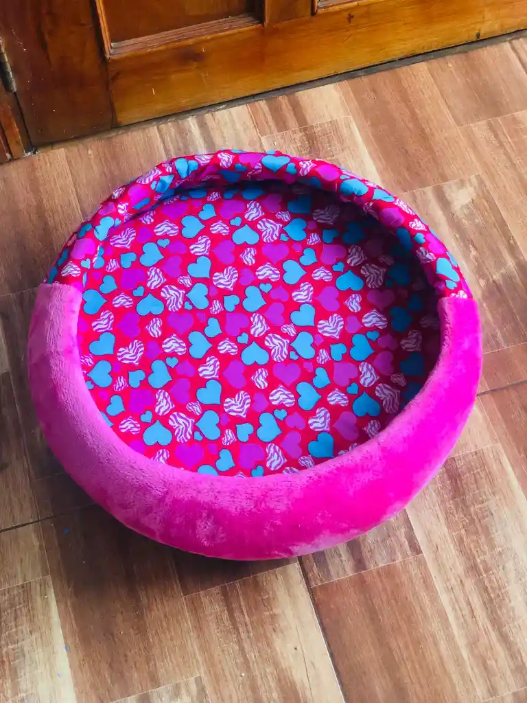 Hermosas camas redondas hechas con elementos reciclables (llanta). las llantas pasan por un proceso de limpieza, corte y tapizado son resisitentes duraderas y comodas. Encuentra dos tamaños: Pequieña 40 cm de diaametro Grande 50 cm de diametro