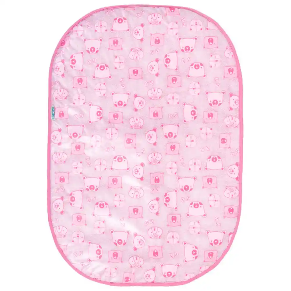 Medidas: 41 cm x 59 cm Composición: Forro: 100 % plástico – Relleno: 100 % poliéster Color: Rosado Para bebés de o a 24 meses