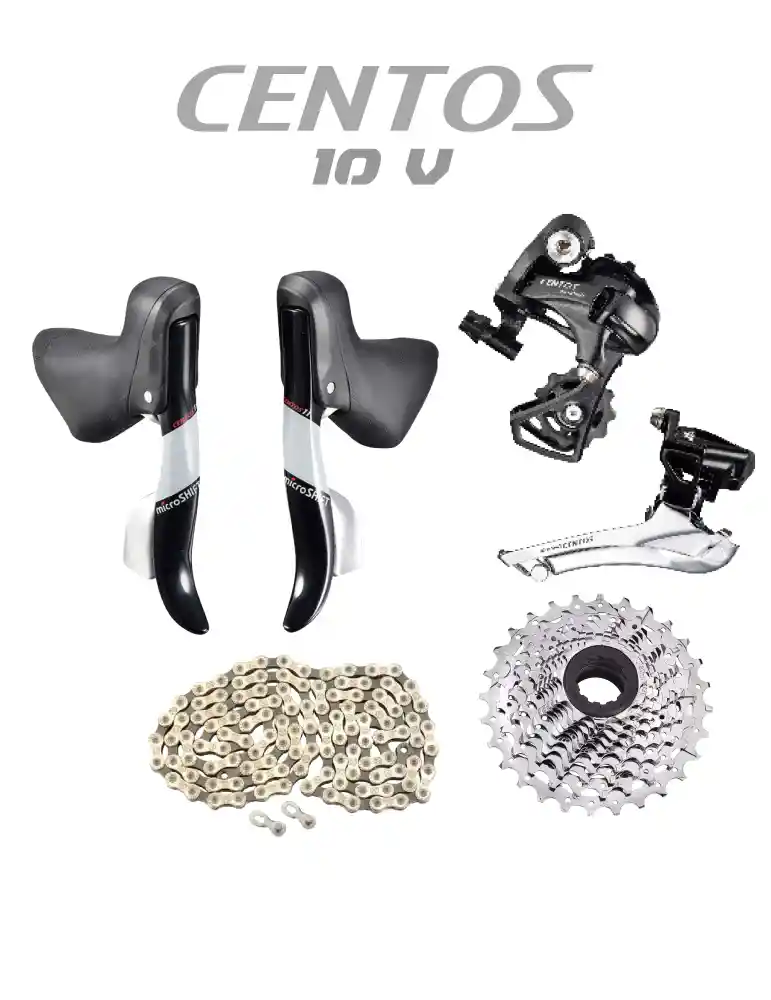 El sistema de cambios CENTOS de 10 Velocidades de microSHIFT es reconocido por su durabilidad, precisión, compatibilidad con otras marcas y ligereza. Enfocado para el ciclista amateur de Ruta que quiere conquistar los puertos con mejor cadencia y comodidad. Su tecnología incorporada de SHIFT & GO permite hacer ataques en pendientes, planos y descensos permitiendo el salto rápido de múltiples piñones en un solo movimiento, así nunca perderás el momentun de la potencia para ganar velocidad.