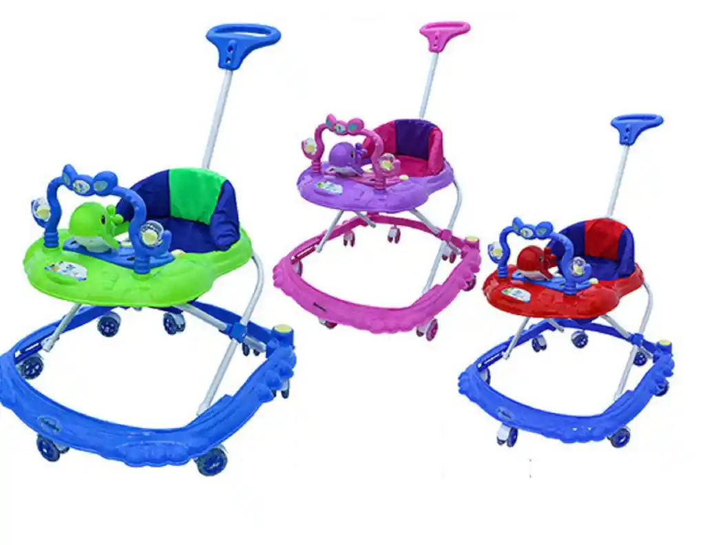 Caminador Bebe Musical CON GUIA PARA EMPUJAR 3 niveles de altura ajustable, TU BEBE amará estar en el hermoso caminador musical caminador con hermoso diseño colores estimulantes. puedes reirarle el la bandeja musical y convertirlo en mesa de juego o comedor de bebe. este espectacular producto con la inigualable calidad de la marca sunbaby el cual cumple con las funciones de CAMINADOR CON CENTRO DE ESTIMULACIÓN Y COMEDOR (AL RETIRALE LA BANDEJA ), con sus sonajeros y botones Musicales. Tu bebe te lo agradecerá con su alegría! -Espaldar Abullonado -Materiales de alta resistencia. – llantas dobles giratorias 360°. -Centro de entretenimiento CON sonido. -Tres niveles de altura ajustable. -Colores de moda. Peso: 3.2 KG Medidas Largo: 75cm Ancho:60cm Alto: 84 Este caminador tiene un diseño y color bastante llamativo. es el caminador perfecto para que tu bebe este cómodo y seguro gracias a sus 16 Ruedas Plasticas que le permiten total desplazamiento, además su bandeja frontal con accesorios le permitirá mantener activa su imaginación. máximo confort colores estimulantes anti-alérgico