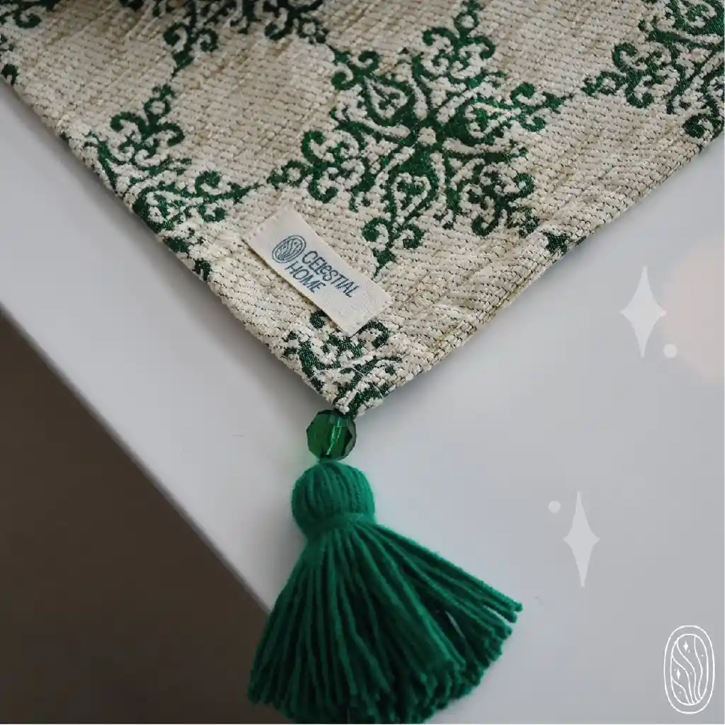 EL CAMINO DE MESA ESSENTIAL GREEN ESTÁ INSPIRADO EN LA NAVIDAD CON UN COLOR VERDE TRADICIONAL Y UNOS ESTAMPADOS QUE SE CARACTERIZA EN ESTA ÉPOCA TAN MARAVILLOSA. EL CAMINO ESTÁ COMPUESTO CON 93% POLIÉSTER Y 7% LUREX. CUENTA CON UNAS BORLAS ELABORADAS A MANO POR ARTESANOS COLOMBIANOS. ES IDEAL PARA DECORAR TU MESA EN ESTA ÉPOCA DE NAVIDAD. MEDIDAS: 1M X 40CM