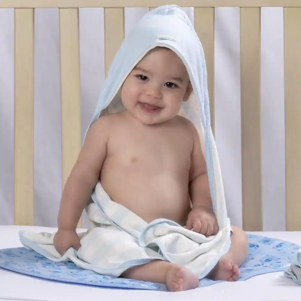 Toalla en Terry Preteñida Con Capucha y Sesgo. Recomendada Para la Delicada Piel de Los Recién Nacidos. Tejido Suave y Absorbente.