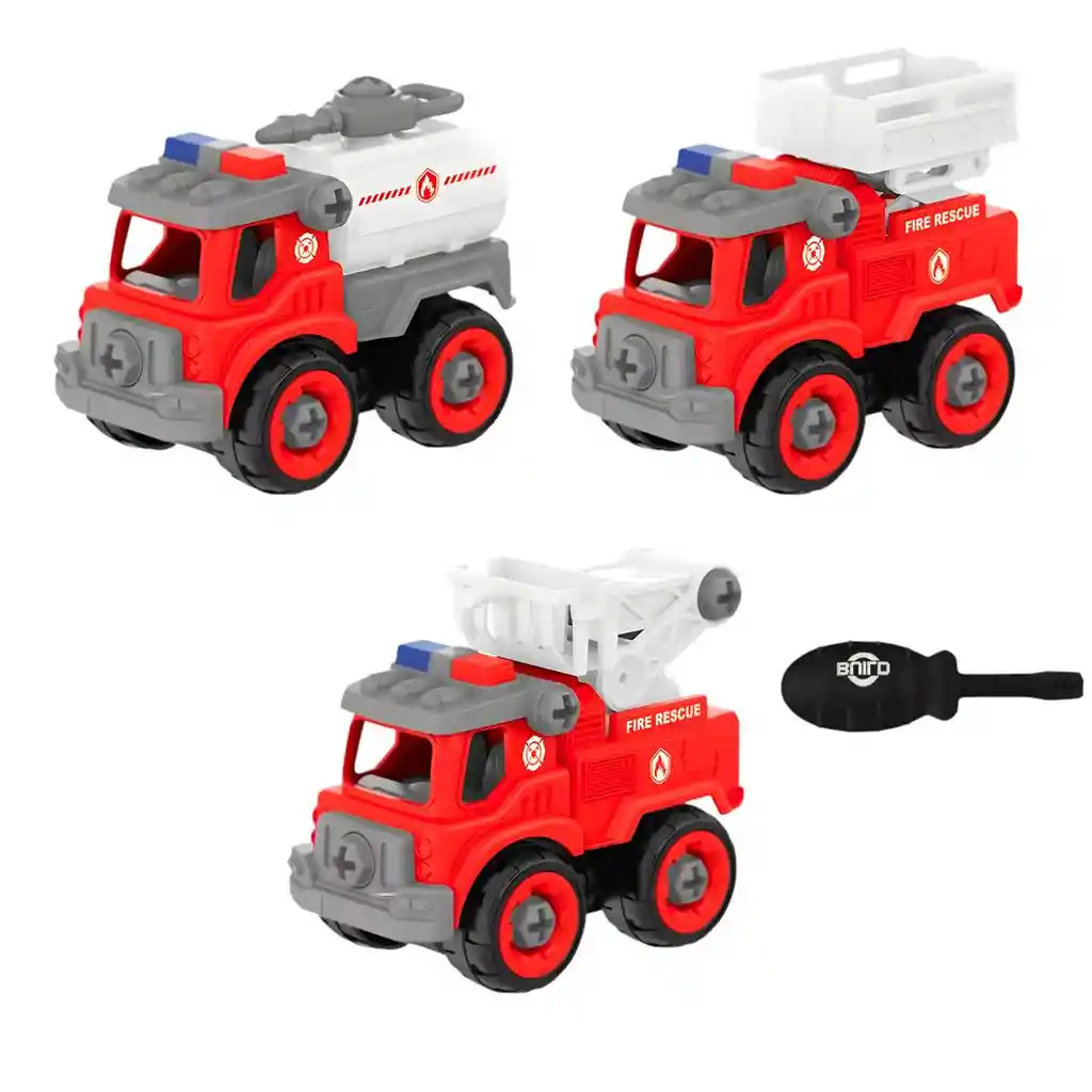 ¡Conviértete en el héroe de la ciudad, tanto en el rescate como en el taller mecánico, con nuestros increíbles Camiones de Bomberos Desarmables! Este no es un simple camión de juguete; es un completo set de construcción que permite a tu pequeño ingeniero armar y desarmar su propio vehículo de emergencias una y otra vez usando el destornillador incluido. Cada pieza está diseñada para ser manipulada fácilmente por manos pequeñas, fomentando el desarrollo de la motricidad fina, la coordinación y las habilidades para resolver problemas. Ya sea que elijan construir el camión con escalera, el cisterna de agua o el de canasta de rescate, este juguete garantiza el doble de diversión al combinar el juego de roles de un valiente bombero con la satisfacción de un constructor. ¡Es el regalo perfecto para encender la creatividad y la imaginación, ofreciendo horas de juego constructivo y heroicas aventuras! Ficha Técnica: Dimensiones del vehiculo : 10 cm x 6 cm x 5 cm Material : Plástico ABS Edad recomendada: + 3 años Referencia: LY045C Certificado de conformidad: CS-LCO-13233-2021S2/432 ** _Para defectos de fábrica o retractos: \_Por favor revise el producto apenas lo reciba y antes de usarlo. No aplican ley de retracto o defectos de fábrica luego de usar el producto. Se manejan máximo 5 días para reportar defectos de fábrica (por ejemplo, producto funciona mal, piezas faltantes, rotas, etc). Para hacer efectiva la devolución el producto debe devolverse con el empaque original, el cual debe estar en buen estado, incluir todos los documentos y las partes completas y sin daños.