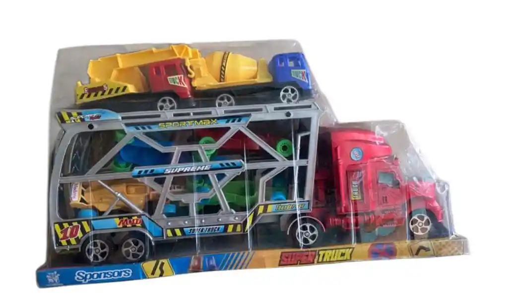 ¡Diversión doble sobre ruedas! 😄 Este increíble camión mula niñera transporta una combinación de camiones de construcción y autos de Fórmula Uno, ofreciendo una experiencia de juego completa para los pequeños amantes de los vehículos. 🚧✨ Fabricado en plástico resistente y liviano, ideal para horas de entretenimiento seguro y creativo. Perfecto para estimular la imaginación y la coordinación de los niños. 🎯 Características principales: 🚛 Camión mula con plataforma de transporte. 🏗️ Incluye mini camiones de construcción. 🏎️ Incluye autos tipo Fórmula 1. 💪 Material: Plástico resistente y duradero. 🎨 Colores llamativos y diseño infantil. 👦 Recomendado para niños mayores de 3 años.