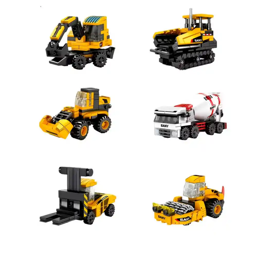Espectacular set de construcción SANY 6 en 1, ideal para niños apasionados por los vehículos de obra y los robots transformables. Incluye seis modelos diferentes de maquinaria pesada como excavadora, mezcladora de cemento, tractor, niveladora, montacargas y bulldozer, que pueden combinarse para formar un impresionante robot gigante. Fabricado con piezas de alta calidad, este juego estimula la creatividad, la coordinación y el pensamiento lógico mientras ofrece horas de diversión constructiva. Perfecto para niños mayores de 6 años que disfrutan armando y transformando. Ficha Técnica: Materiales : Plástico ABS Dimensiones: 18 cm x 14 cm x 4 cm Edad recomendada : + 6 años en adelante Certificado de conformidad: SL-CS-210044 Referencia: JM-1390 712060-712065 Términos de garantía: Para defectos de fábrica o retractos: Por favor revise el producto apenas lo reciba y antes de usarlo. No aplican ley de retracto o defectos de fábrica luego de usar el producto. Se manejan máximo 5 días para reportar defectos de fábrica (por ejemplo, producto funciona mal, piezas faltantes, rotas, etc). Para hacer efectiva la devolución el producto debe devolverse con el empaque original, el cual debe estar en buen estado, incluir todos los documentos y las partes completas y sin daños.