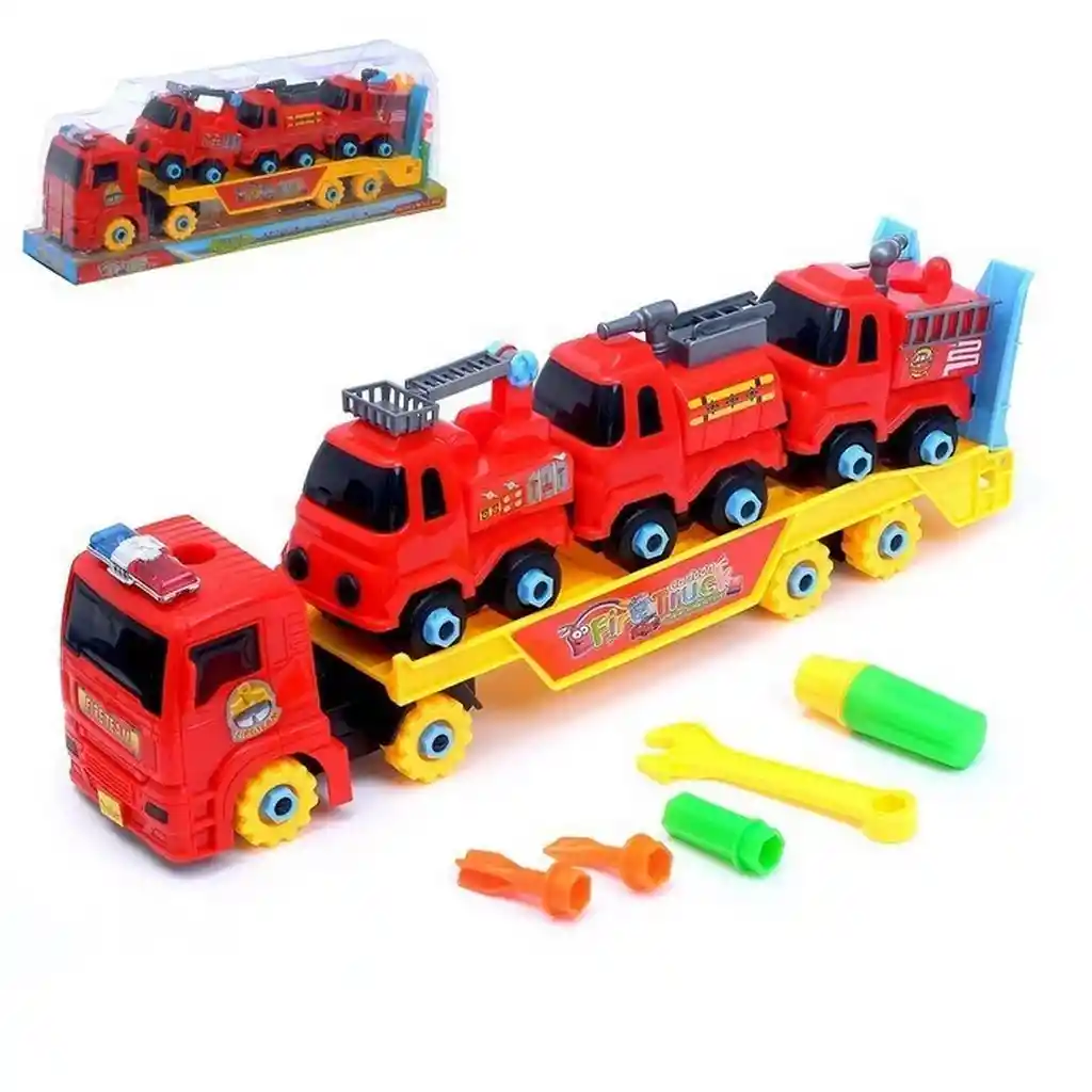 El Camión Niñera Porta Vehículos con Herramientas de Ruedas Libres es perfecto para los pequeños constructores que quieren vivir grandes aventuras. Su misión será transportar los vehículos hasta la obra y colaborar en la construcción, desarrollando su imaginación y habilidades. El set incluye un destornillador con puntas intercambiables y una llave de plástico, que permiten desarmar y montar los camiones al quitar las ruedas y tornillos. Este juguete de piezas armables ayuda a mejorar la memoria y la destreza manual de los niños mientras se divierten. Recomendado para mayores de 3 años, viene en una caja sellada y lista para regalar. Ficha Técnica: Material : Plástico ABS no tóxico, inodoro e inofensivo Edad Recomendada : + 3 Años Medidas del Camión : 40 cm x 10 cm Medidas de los Vehículos : 10 cm x 8 cm Certificado de conformidad: E5-0359-2021 Referencia: C1897 Términos de garantía: Para defectos de fábrica o retractos: Por favor revise el producto apenas lo reciba y antes de usarlo. No aplican ley de retracto o defectos de fábrica luego de usar el producto. Se manejan máximo 5 días para reportar defectos de fábrica (por ejemplo, producto funciona mal, piezas faltantes, rotas, etc). Para hacer efectiva la devolución el producto debe devolverse con el empaque original, el cual debe estar en buen estado, incluir todos los documentos y las partes completas y sin daños.
