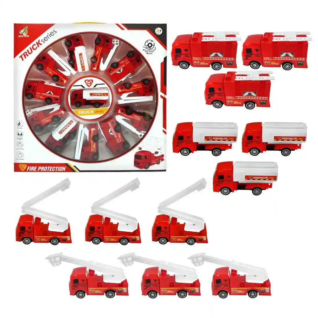 ¡Alerta de emergencia! Reúne a tu brigada y corre al rescate con este espectacular set de 8 camiones de bomberos. Este completo paquete te pone al mando de un increíble equipo de rescate, incluyendo una gran variedad de modelos como camiones cisterna y vehículos con escaleras extensibles, cada uno listo para una misión diferente. Gracias a su potente motor de retrofricción, solo tienes que halar cualquier vehículo hacia atrás y soltarlo para verlo correr a toda velocidad hacia el peligro. Es el regalo perfecto para los pequeños héroes en casa, ideal para crear horas de juego imaginativo, grandes misiones de rescate y mucha diversión para compartir. Ficha Técnica: Material: Plástico ABS Dimensiones Del Vehículo : 9 cm x 6 cm x 3 cm Apto para: + 3 Años Referencia: XY338-C4 Certificado de conformidad: CS-LCO-13233-2021S2/432 ** _Para defectos de fábrica o retractos: \_Por favor revise el producto apenas lo reciba y antes de usarlo. No aplican ley de retracto o defectos de fábrica luego de usar el producto. Se manejan máximo 5 días para reportar defectos de fábrica (por ejemplo, producto funciona mal, piezas faltantes, rotas, etc). Para hacer efectiva la devolución el producto debe devolverse con el empaque original, el cual debe estar en buen estado, incluir todos los documentos y las partes completas y sin daños.