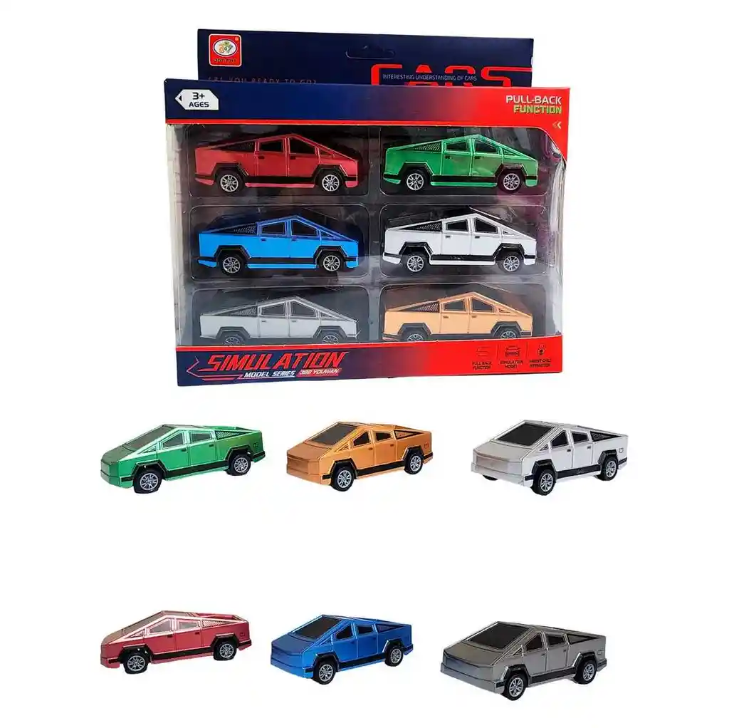 ¡Prepárate para competir en el futuro con este increíble set de seis camionetas de diseño vanguardista! Cada vehículo de esta colección luce una estética futurista y angular inconfundible, disponible en una variedad de colores vibrantes para iniciar la carrera. Gracias a su potente mecanismo de retrofricción, solo tienes que halarlas hacia atrás sobre una superficie lisa y soltarlas para verlas dispararse a toda velocidad. Perfectas para organizar emocionantes competencias, fomentar el juego imaginativo o para los pequeños coleccionistas aficionados a los vehículos únicos, este paquete es el regalo ideal que garantiza horas de diversión a máxima potencia. Ficha Técnica: Material: Plástico ABS Dimensiones Del Vehículo : 8 cm x 3 cm x 3 cm Apto para: + 3 Años Referencia: 399-878K6 Certificado de conformidad: CS-LCO-13233-2021S2/432 ** _Para defectos de fábrica o retractos: \_Por favor revise el producto apenas lo reciba y antes de usarlo. No aplican ley de retracto o defectos de fábrica luego de usar el producto. Se manejan máximo 5 días para reportar defectos de fábrica (por ejemplo, producto funciona mal, piezas faltantes, rotas, etc). Para hacer efectiva la devolución el producto debe devolverse con el empaque original, el cual debe estar en buen estado, incluir todos los documentos y las partes completas y sin daños.
