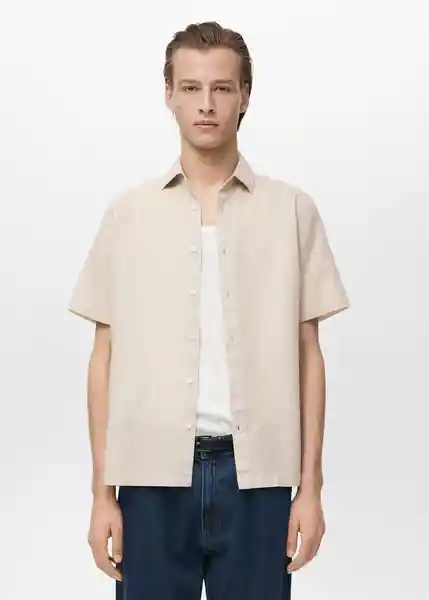 Bajo Recto Cierre Delantero Con Botones Cuello Camisero el Modelo Mide 190 cm y Lleva Una Talla M Manga Corta Regular Fit Tejido Mezcla de Lino - 87087889_07.
