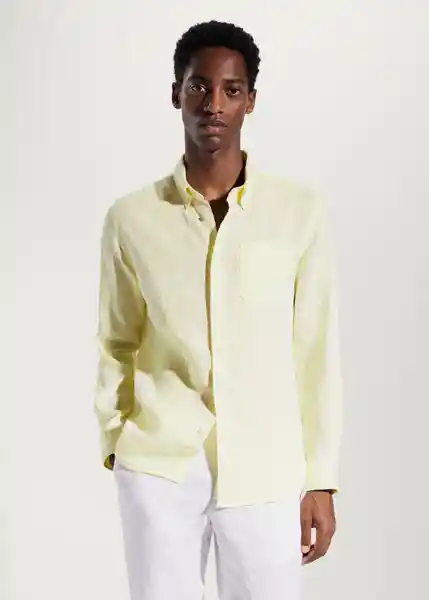 100% Lino Bolsillo de Parche en el Pecho Cierre de Botones en la Parte Delantera Cuello Clásico Manga Larga Slim Fit Tejido Ligero - 47035905_12.