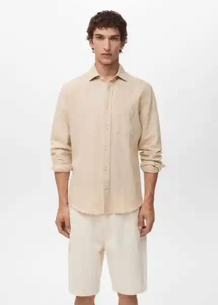 Bajo Redondeado Bolsillo Parche Delantero Cierre Delantero Con Botones Classic Fit Cuello Camisero el Modelo Mide 190 cm y Lleva Una Talla M Pinza en la Parte Posterior Puños Abotonados Tejido Mezcla de Lino y Algodón - 87075929_07.