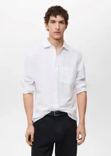 Bajo Redondeado Bolsillo Parche Delantero Cierre Delantero Con Botones Classic Fit Cuello Camisero el Modelo Mide 190 cm y Lleva Una Talla M Pinza en la Parte Posterior Puños Abotonados Tejido Mezcla de Lino y Algodón - 87075929_01.