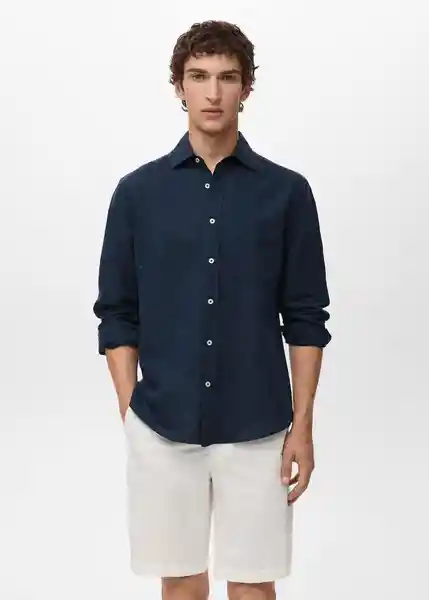 Bajo Redondeado Bolsillo Parche Delantero Cierre Delantero Con Botones Classic Fit Cuello Camisero el Modelo Mide 190 cm y Lleva Una Talla M Pinza en la Parte Posterior Puños Abotonados Tejido Mezcla de Lino y Algodón - 87075929_56.