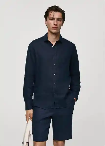 Bajo Redondeado, Bolsillo de Parche en el Pecho, Cierre de Botones en la Parte Delantera, Classic Fit, Cuello Clásico, el Modelo Mide 185 cm y Lleva Una Talla M, Manga Larga Con Puños Abotonados, Tejido 100% de Lino, Tejido Ligero - 77030340_56.