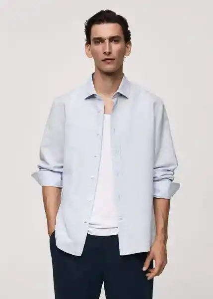 Bajo Redondeado, Cierre Delantero Con Botones, Classic Fit, Cuello Camisero, el Color Verde Agua es Exclusivo Online, el Modelo Mide 183 cm y Lleva Una Talla M, Manga Larga Con Puños Abotonados, Tejido Mezcla de Algodón y Lino - 77060583_50.