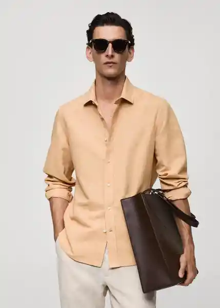 Bajo Redondeado, Cierre Delantero Con Botones, Classic Fit, Cuello Camisero, el Color Verde Agua es Exclusivo Online, el Modelo Mide 183 cm y Lleva Una Talla M, Manga Larga Con Puños Abotonados, Tejido Mezcla de Algodón y Lino - 77060583_26.