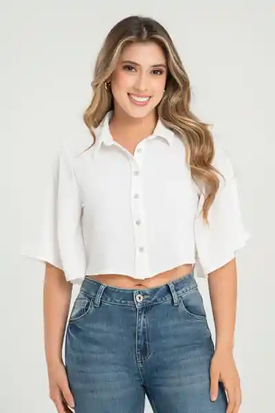 En Tejido Plano Con Textura Especial Cuello Camisero Perilla en Centro Frente Con Botones 18 L Manga Corta a la Altura Del Codo Con Vuelo Largo Pretina Ruedos de 0.8 mm Silueta Semi Ajustada.