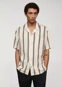 Bajo Recto Bolsillo de Parche en el Pecho Cierre Delantero Con Botones Cuello Bowling el Modelo Mide 190 cm y Lleva Una Talla M Estampado Rayas Verticales Manga Corta Regular Fit Tejido Fluido - 67010449_70.