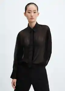Cierre de Botones en la Parte Delantera Cuello Camisero Diseño Recto Manga Larga Abotonada Tejido de Gasa Tejido Fluido Terminaciones Satinadas - 57087757_99.
