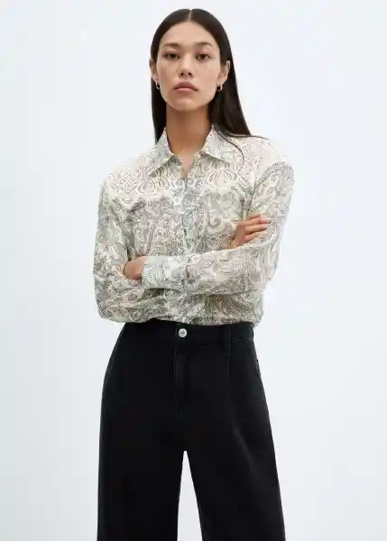 Cierre Delantero Con Botones Cuello Camisero Detalle Encaje Diseño Largo Diseño Oversize Estampado Paisley Manga Larga Con Puños Abotonados Tejido Fluido Total Look - 57057719_02.